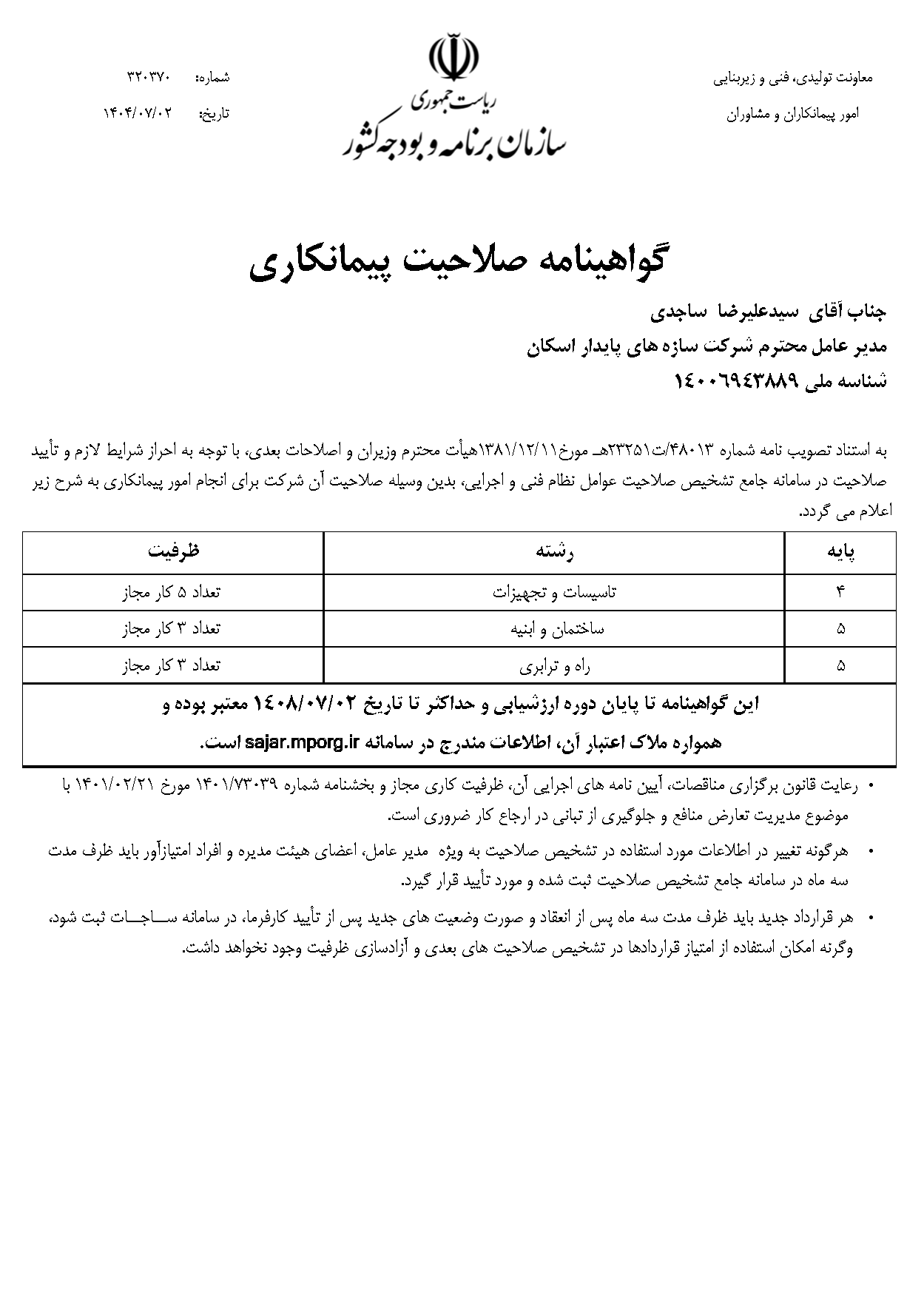 گروه صنعتی پایدار اسکان یک گروه ساختمانی و صنعتی چند رشته ای است که هدف آن ارائه راهکارهای نوآورانه و کیفیت استثنایی به مشتریان است. ماموریت ما ایجاد روابط بلندمدت با مشتریان و شرکا با ارائه خدمات قابل اعتماد، کارآمد و مقرون به صرفه است.